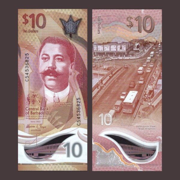 BARBADOS 10 DOLLAR 2022 PW82 UNC POLYMER